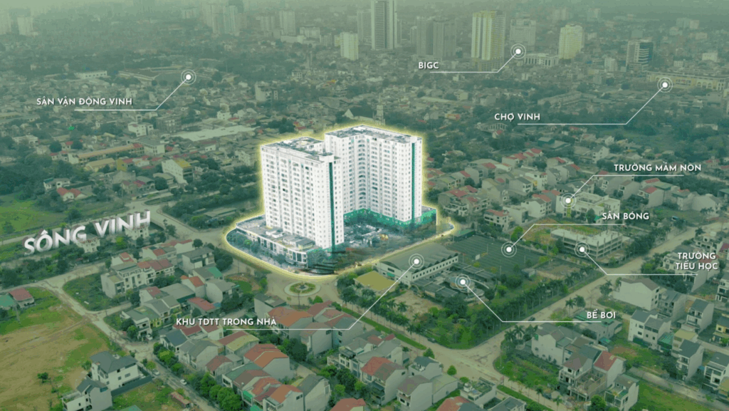 - 1–3km: trường học, chợ Vinh, Vincom Plaza, bệnh viện đa khoa.